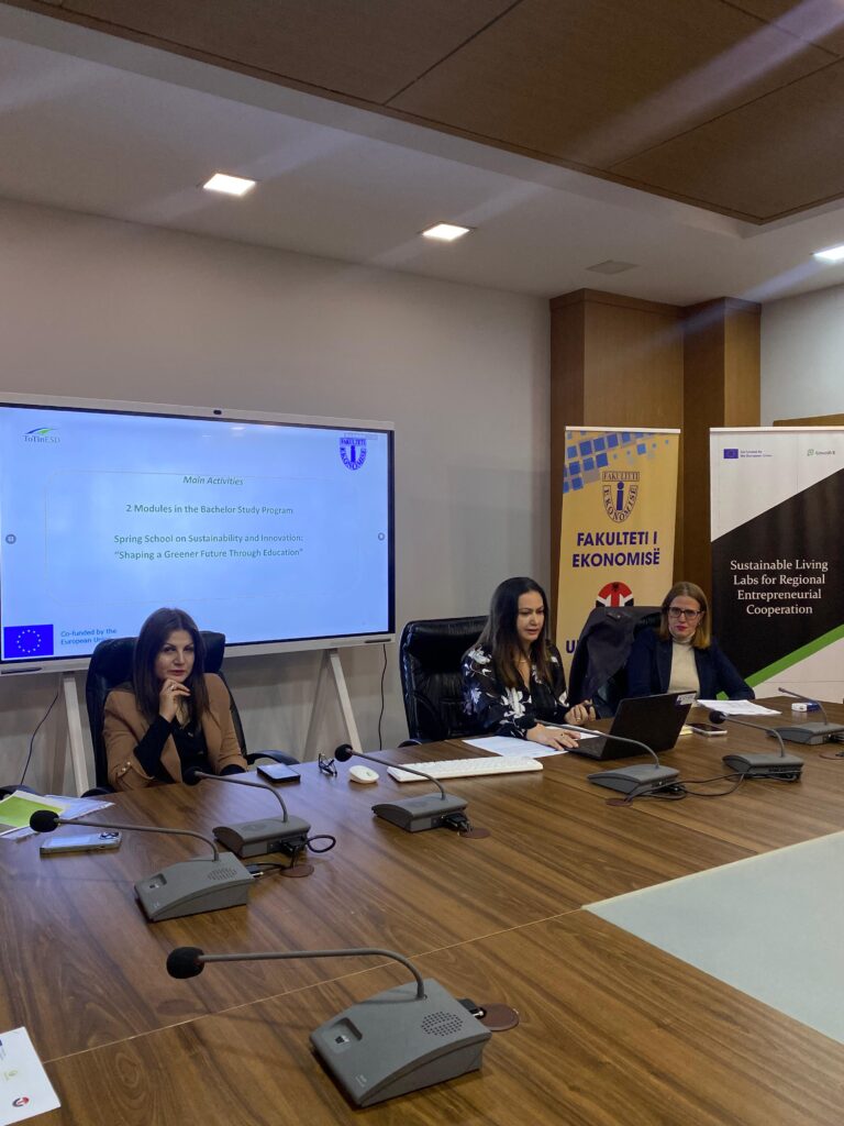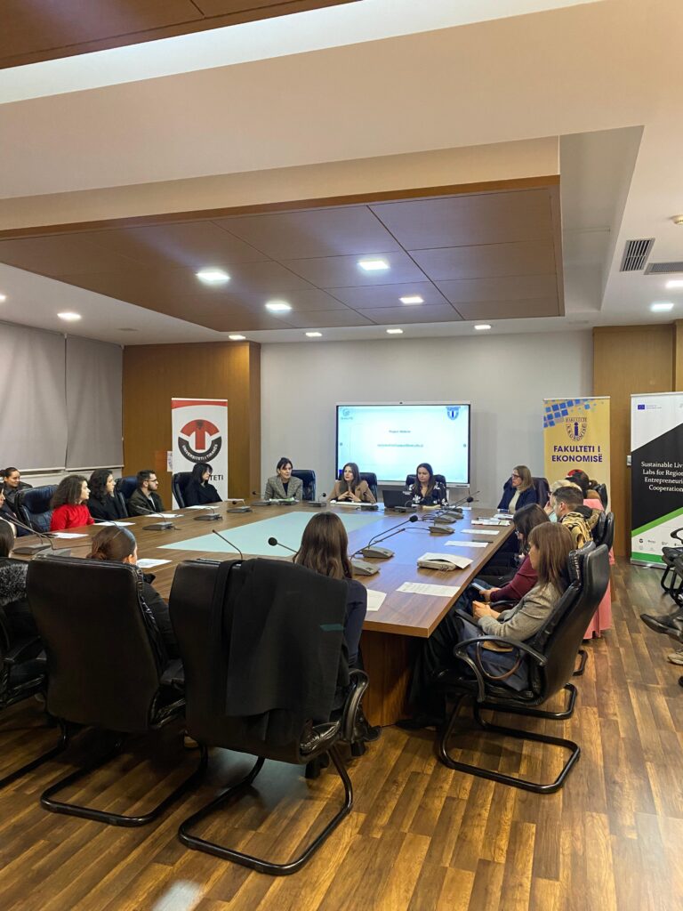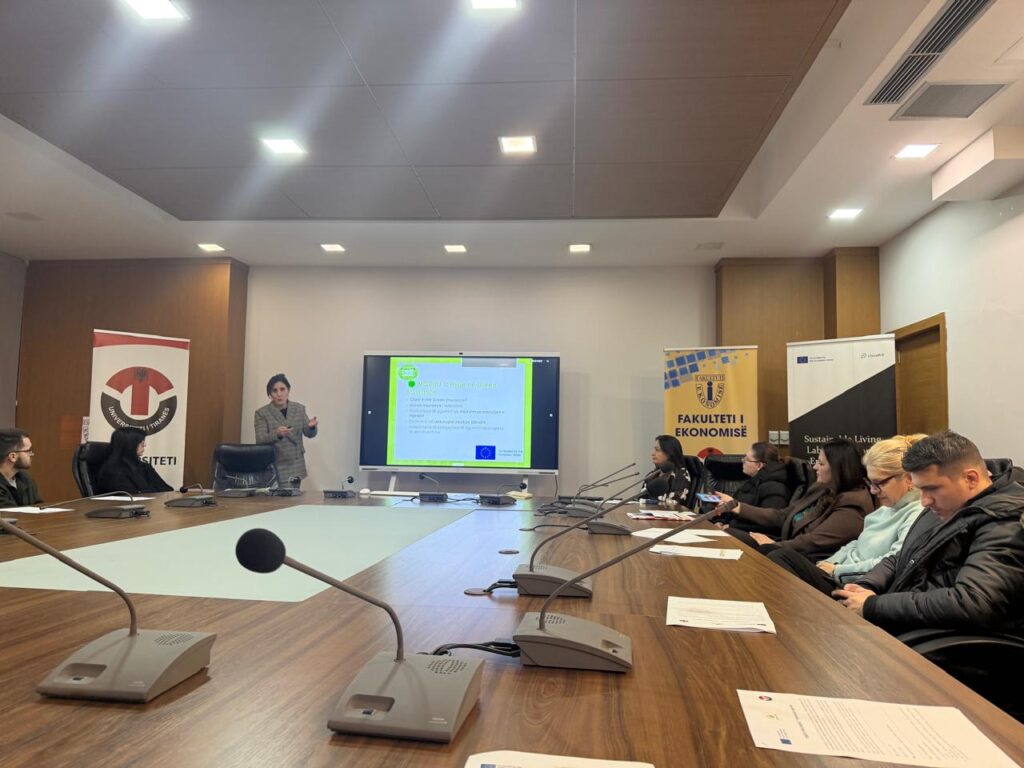 On May 26, 2025, a round table on the role of banks in the green transition was held at the Faculty of Economy, University of Tirana, premises. The event brought together a diverse group of stakeholders, including representatives from banks and other financial institutions, members of the business community, academic staff and master students. The purpose of the meeting was to facilitate a comprehensive dialogue on the contribution of the banking sector to sustainable development. This activity was held in the framework of the Jean Monnet Module 2023: “Enhancing knowledge of EU green finance policies in insurance and business valuation” (Green FIB).